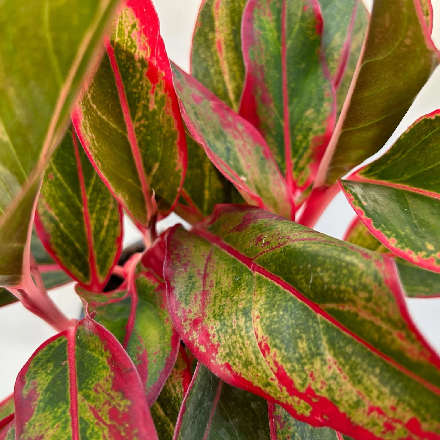 Der Kolbenfaden (Aglaonema ‚Crete‘) gehört zu den Aronstabgewächsen, stammt ursprünglich aus Südostasien und ist vor allem wegen seiner malerischen Blattzeichnung beliebt. Die elliptischen Blätter mit langen rosa Stielen sind ganzjährig sattgrün, können bis zu 30 cm lang werden und besitzen eine besondere auffällige pinke Umrandung und Blattmitte. Die pflegeleichte Schmuckblattpflanze wächst aufrecht und mit genug Platz kann sie bis zu 1 m groß werden.