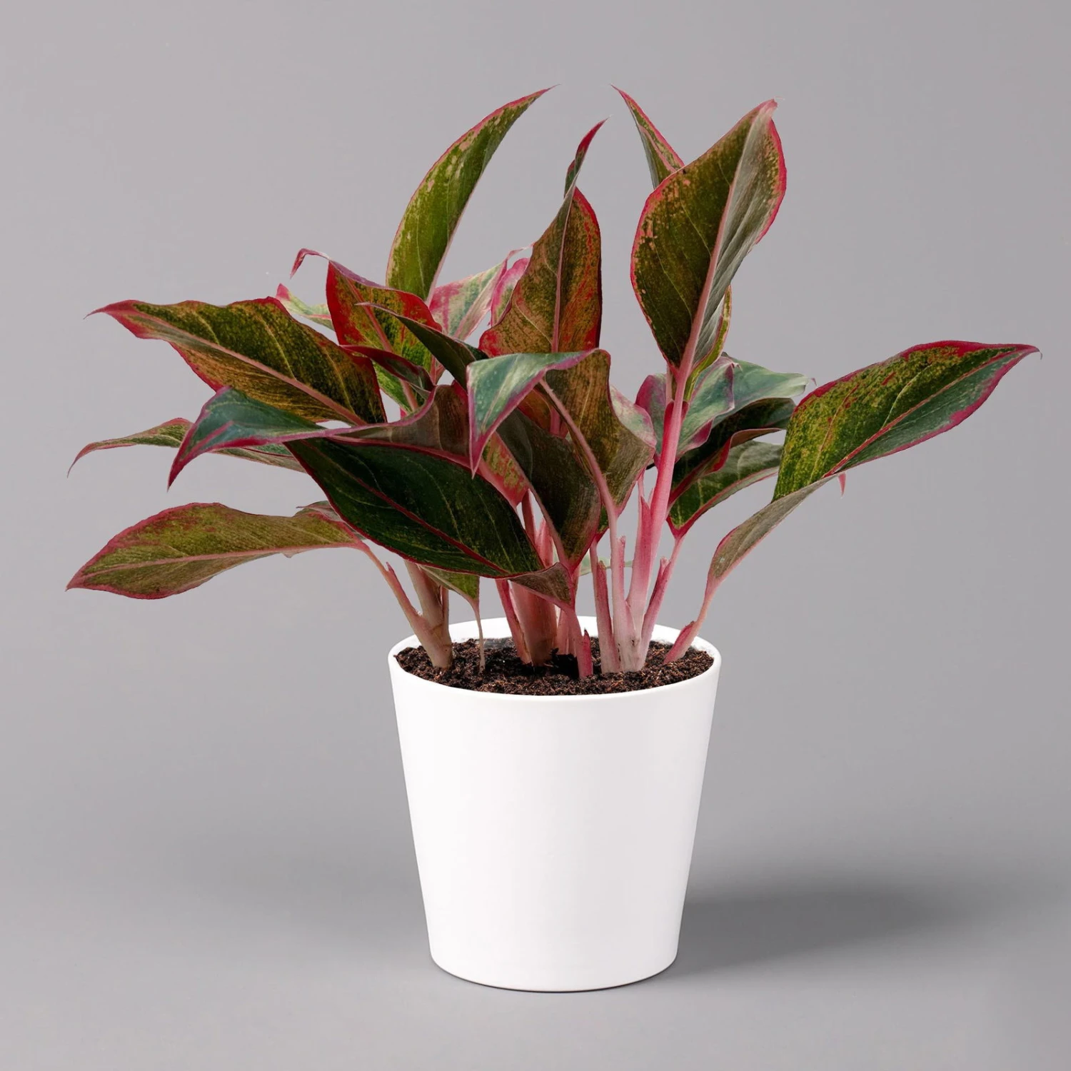 Aglaonema ‚Crete‘, Mit Übertopf Dallas Weiß, Topf-Ø 12 Cm