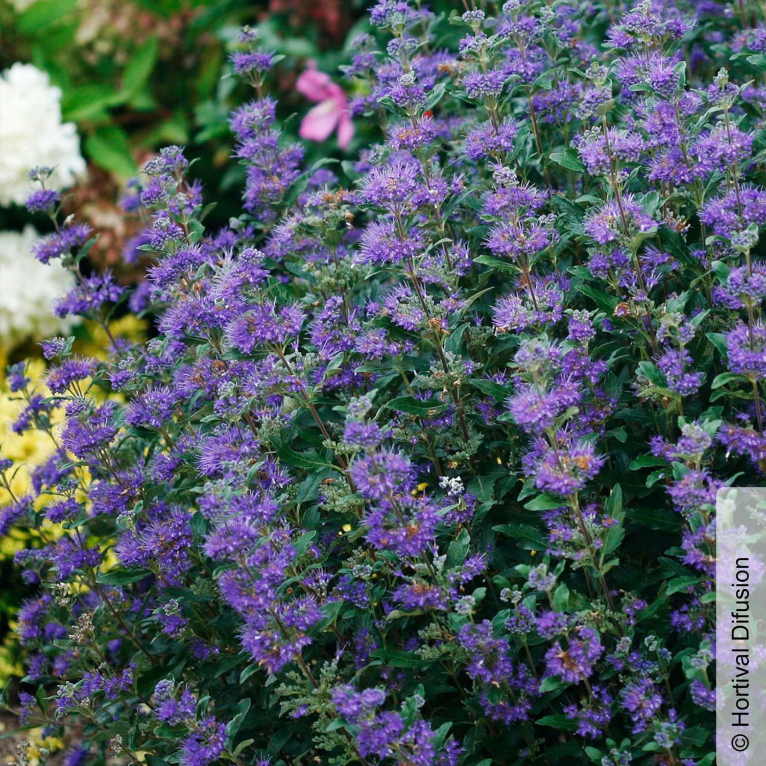 Die Bartblume Caryopteris clandonensis ‚Beyond Midnight®‘ begeistert mit einem tollen Kontrast zwischen den Blüten in nachtblau und dem dunkelgrünen, glänzendem Laub. Die kompakte Bartblume erreicht Wuchshöhen bis zu ca. 80 Zentimetern, bildet im Garten eindrucksvolle, blühende Büsche und ist sehr beliebt bei Bienen und Hummeln. Damit sich die Caryopteris clandonensis ‚Beyond Midnight®‘ in voller Pracht entfalten kann, benötigt das Laubgehölze einen sonnigen Standort und frische, nährstoffreiche Böden. Die Bartblume benötigt bei Dauerfrost etwas Schutz mit Reisig oder Vlies.