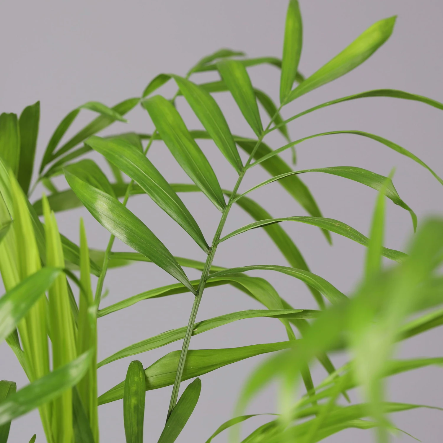 Die Mexikanische Bergpalme (Chamaedorea elegans) ist eine tolle Einsteigerpflanze für frisch gebackene Pflanzenfreunde, da sie besonders robust ist und den ein oder anderen Pflegefehler gutmütig verzeiht. Ihrem Namen entsprechend stammt die Palme aus den mittelamerikanischen Bergregionen, wo sie im Schatten größerer Bäume als Unterwuchs gedeiht. Charakteristisch ist der schmale Stamm mit überhängenden, zierlich wirkenden Blattwedeln, die aus einzelnen, lanzettlichen Fiedern bestehen. Im Zimmer kann die Pflanze Höhen von bis zu 2 Metern erreichen.
