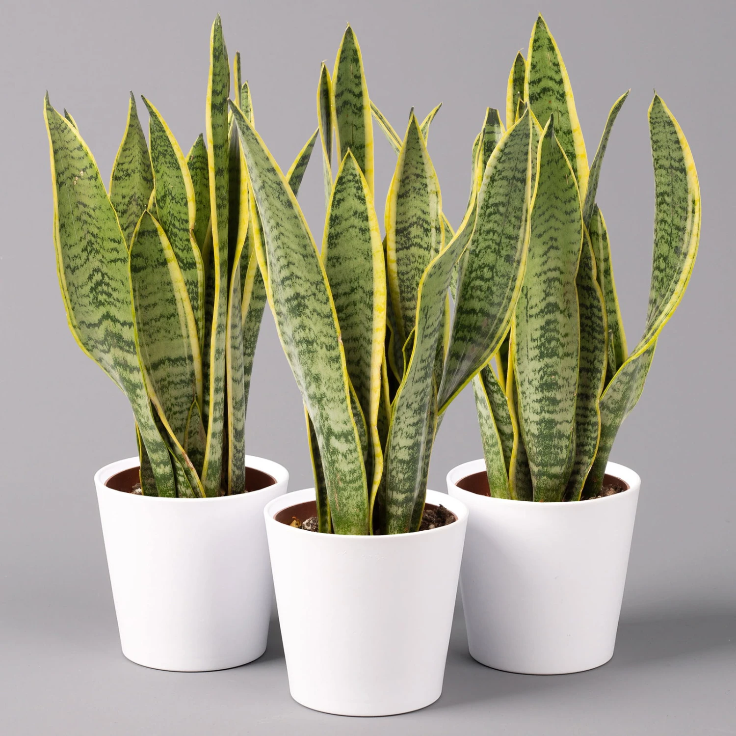 Der Bogenhanf (Sansevieria trifasciata ‚Laurentii‘) gilt als eine der robustesten und pflegeleichtesten Zimmerpflanzen überhaupt und ist auch unter den Namen ‚Sansevierie‘ oder ‚Schwiegermutterzunge‘ bekannt. Charakteristisch sind die riemenartig festen, fleischigen Blätter, deren Blattränder beidseitig gelbe Querstreifen aufweisen. Die grundständigen Blätter entspringen einem Rhizom und enden aufrecht in einer Spitze. Bei guter Pflege kann der Bogenhanf über einen Meter hoch werden.
