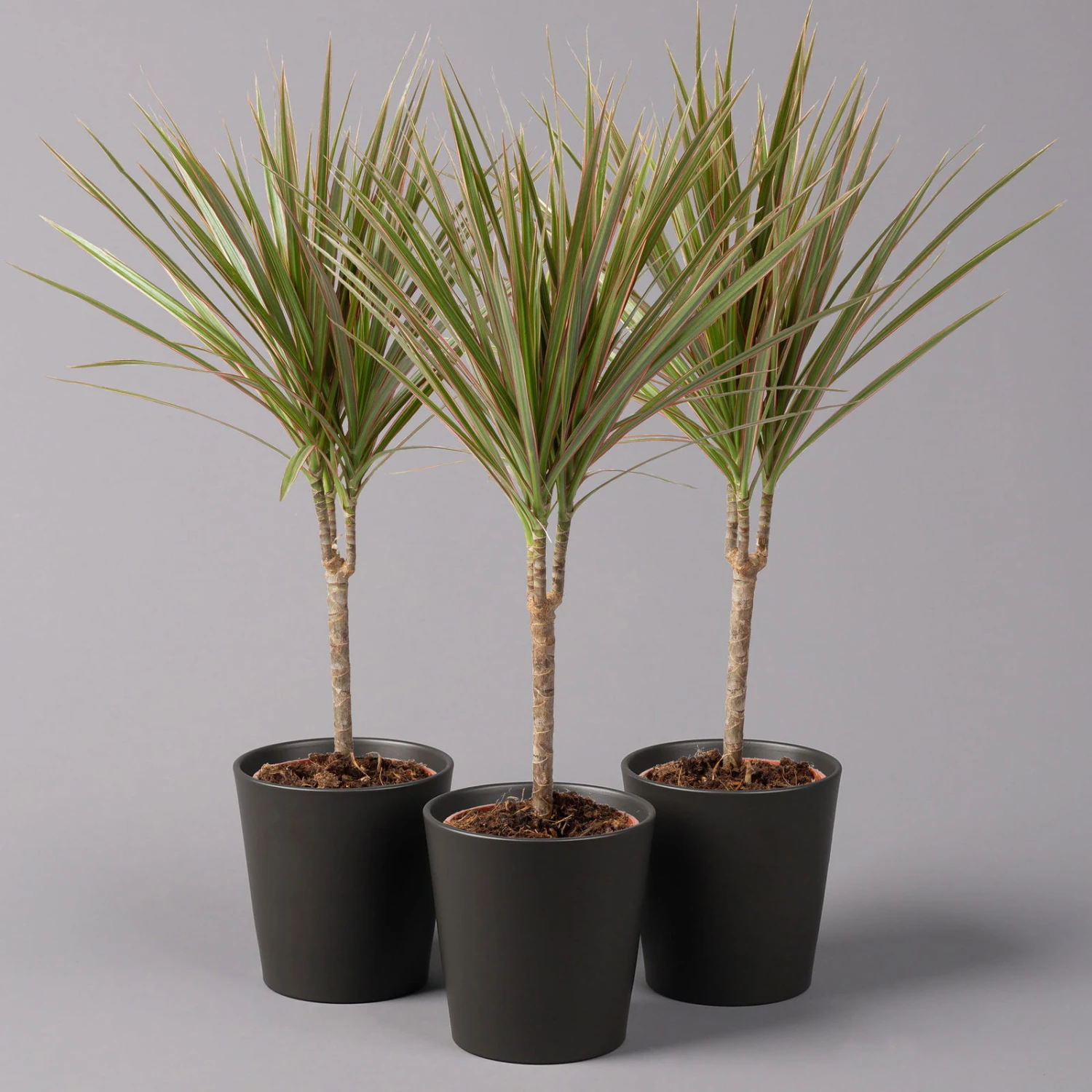Jede Pflanze wird im Pflanztopf mit 13 cm Ø inkl. Keramiktopf Dallas in anthrazit matt geliefert.