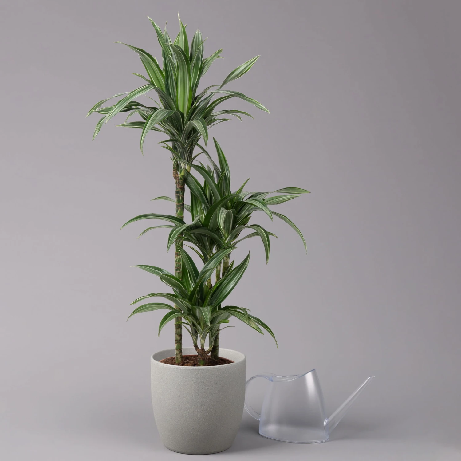 Der Drachenbaum ‚Ulises‘ punktet mit dezenter Blattmaserung und aufrechten Wuchs. Diese Drachenbaum ist nicht zuletzt wegen ihrer relativ breiten, lanzettförmigen weißen Blätter beliebt. Die subtropische Pflanze ist eine unkomplizierte und zugleich effektvolle Lösung für die Begrünung Ihrer Wohn- oder Büroräume. Auch in einem beheizten Wintergarten macht der Drachenbaum eine gute Figur. Optimal ist ein heller Standort ohne Zugluft und ohne direkte Sonneneinstrahlung. Ihr Drachenbaum gedeiht sowohl in einem durchlässigen, humosen Substrat. Zu Gießen ist diese Zierpflanze eher sparsam, jedoch ohne dass das Substrat austrocknet. Unter anderem können Sie Drachenbäume als Luftfilter kaufen, denn diese Gewächse binden effektiv Benzole und andere Schadstoffe.