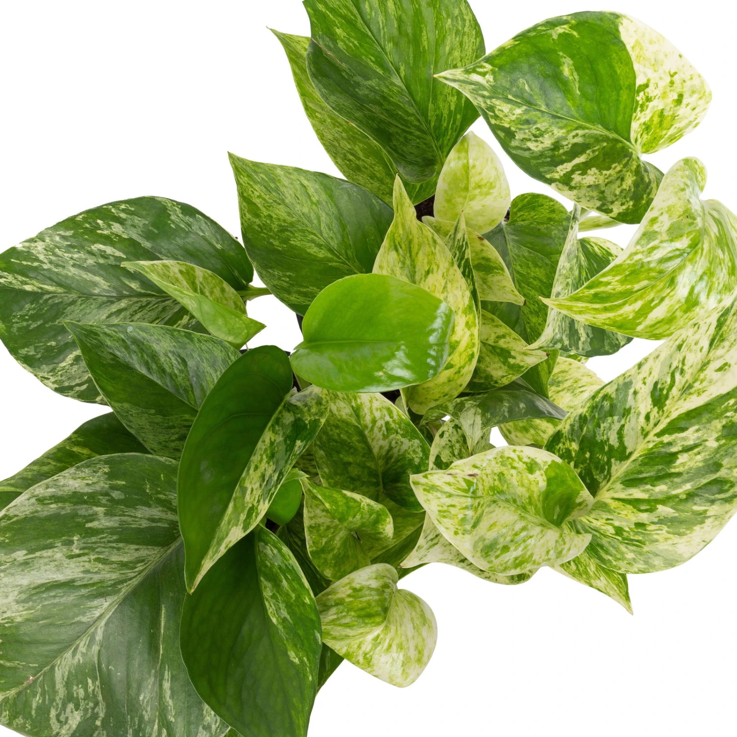 Die Efeutute, Epipremnum pinnatum ‚Marble Queen‘ (syn. Epipremnum aureum ‚Marbel Queen‘), ist eine anspruchslose und mit ihren grün-weiß panischierten Blättern zugleich dekorative kletternde oder hängende Blattschmuckpflanze. Die Efeutute ist eine nahezu perfekte Zimmerpflanze für Anfänger oder fürs Büro, die etliche Fehler wie seltenes Gießen oder nur sporadisches Düngen verzeiht. Mit zu häufigen Wassergaben können Sie dagegen der Efeutute erhebliche Schäden zufügen. An einem hellen absonnigen oder auch halbschattigen bis schattigen Standort fühlt sich Ihre Pflanze sofort wohl. Zugluft und direkte Sonneneinstrahlung sind dagegen zu vermeiden. Sogar im Winter dürfen die Lufttemperaturen nicht dauerhaft unter 16 Grad sinken. Die Epipremnum pinnatum gehört zu den beliebten Raumklimapflanzen und entzieht der Luft Benzole, Nicotin und weitere Schadstoffe. Bitte stellen Sie Ihre Efeutute außerhalb der Reichweite von Kindern oder Hautieren auf, da der Pflanzensaft giftig ist.