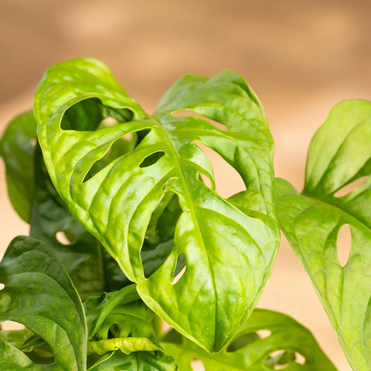 Die Monstera adansonii, das originelle Fensterblatt, begeistert mit der ungewöhnlichen Geometrie ihrer gelochten Blätter und lässt sich nicht nur als Kletter-, sondern auch als Ampelpflanze effektvoll in Szene setzen. Das Fensterblatt ist eine wärmeliebende Zimmerpflanze, die sich an einem halbschattigen bis schattigen Standort mit hoher relativer Luftfeuchtigkeit wohlfühlt. Wir empfehlen, die Monstera nur sparsam zu gießen, das Substrat jedoch nie austrocknen zu lassen. Regelmäßige Sprühbäder mit lauwarmem und kalkarmem Wasser tun diesem Gewächs ausgesprochen gut. Sie können das Fensterblatt in herkömmlicher Zimmerpflanzen- oder Grünpflanzenerde über Jahre hinweg erfolgreich pflegen und für eine harmonische Entwicklung alle 14 Tage mit einem Grünpflanzendünger versorgen. Bitte stellen Sie Ihre Monstera außerhalb der Reichweite von Kindern oder Hautieren auf, da ihr Pflanzensaft giftig ist.