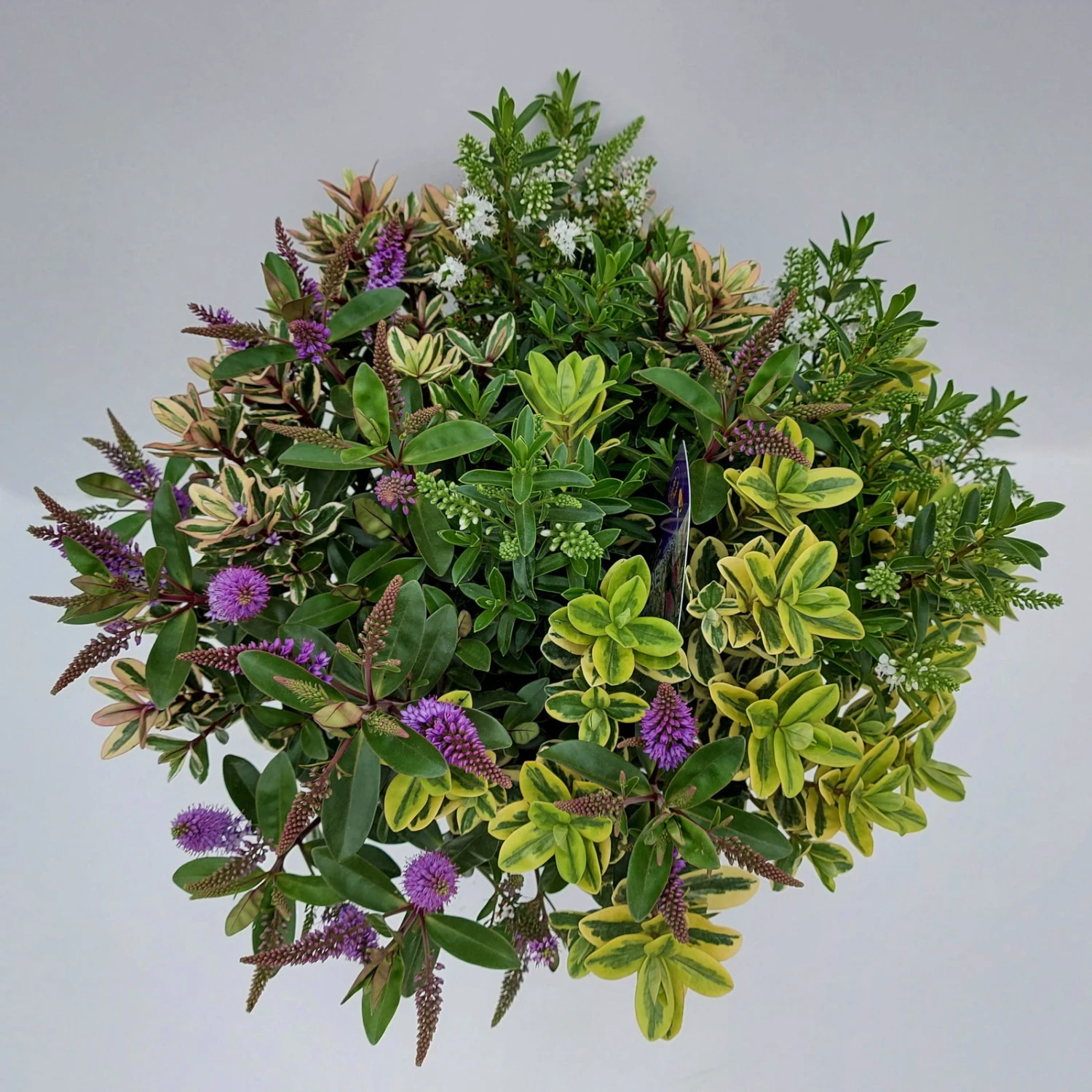 Die großen, lang gestreckten Blätter der Strauchveronika (Hebe andersonii Addenda® ‚Quattro‘) überzeugen in einem satten Grün. Die Pflanze wächst aufrecht und buschig. Die Strauchveronika kann eine Wuchshöhe von 40 bis 60 cm erreichen und auch entsprechend breit werden. In diesem herrlichem Topf sind bis zu 4 verschiedene Sorten zu finden.
