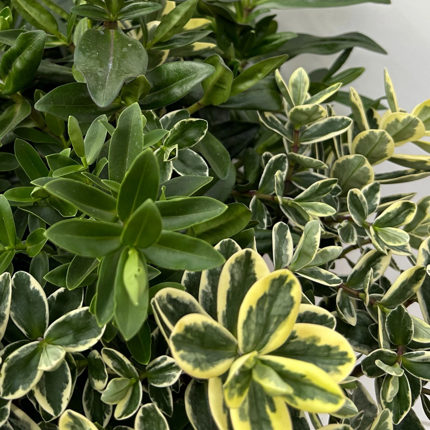 Hebe ‚Trio‘, Farben Zufällig, Grün & Buntlaubig, Topf-Ø 23 Cm