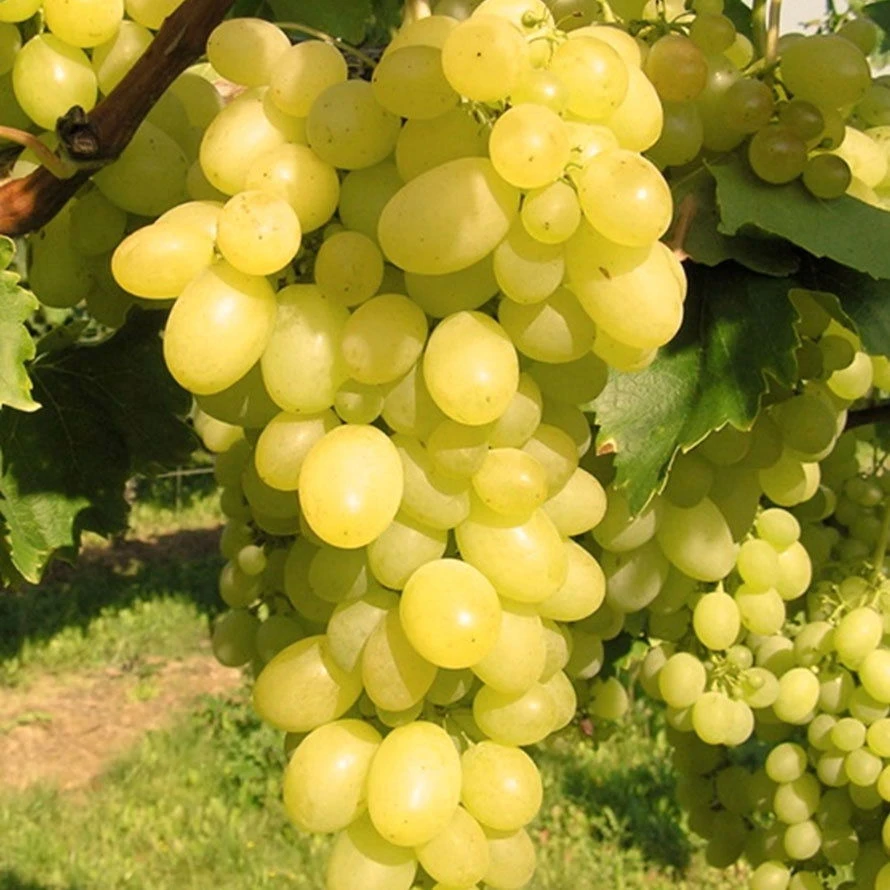 Süße, kernlose Tafeltraube, die als robuste Hausgartensorte überzeugt: Genießen Sie mit der kernlosen Tafeltraube ‚Carina‘ (Vitis vinifera ‚Carina‘) gelbe, große und kernlose Beeren, die in formschönen, lockeren und großen Trauben angeordnet sind.