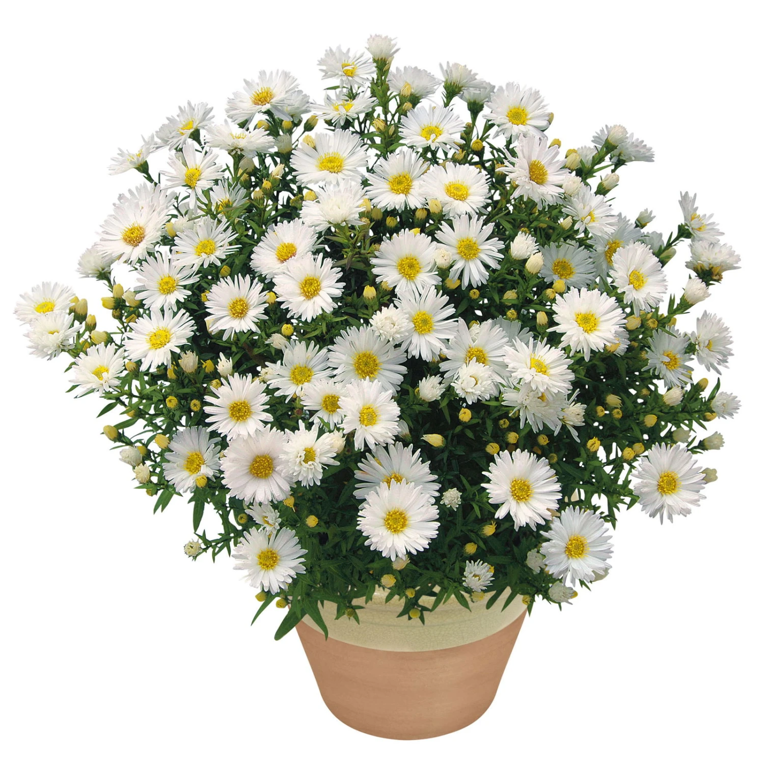 Die Kissenaster ‚Girasol‘ ist ein anmutiger und ausdauernder Herbstblüher in leuchtendem Weiß und eignet sich perfekt für einen insektenfreundlichen Garten. Bei der Suche nach einem geeigneten Standort bedenken Sie bitte, dass Ihre Kissenaster ‚Girasol‘ es sonnig mag und in regen-und windgeschützten Lagen die Blüte üppiger ausfällt. Als Substrat eignen sich lockere und nährstoffreiche Böden am besten. Diese Sorte Aster dumosus ist gut winterhart und wird auch im kommenden Jahr zwischen September und Oktober effektvolle Akzente im Garten setzen. Die Kissenaster bietet sich nicht nur für Blumenrabatten, sondern auch für Kübel oder Balkonkästen als gelungene Lösung an.
