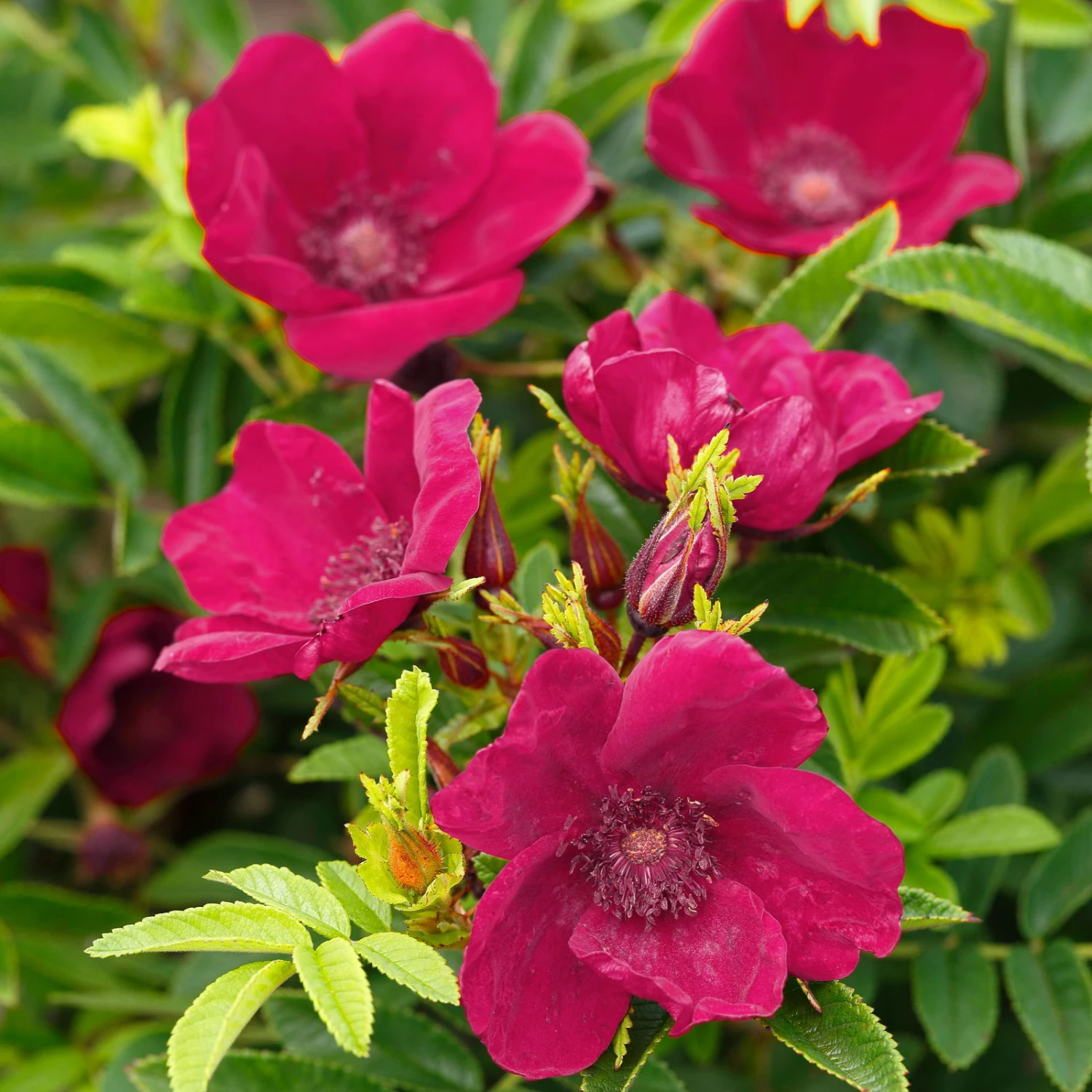 Die Kleinstrauchrose ‚Strandperle® Norderney‘ erreicht moderate Wuchshöhen bis zu 100 Zentimetern und begeistert zwischen Juli und Oktober mit dem eleganten Purpur ihrer ungefüllten Blüten. Diese Sorte vom Rosenzücknter Tantau ist eine beliebte Wildrosen-Hybride, die sich hervorragend für dekorative Blütenhecken, zum Säumen von Gartenwegen oder zum Gestalten von Blumenrabatten eignet. Auf Ihrer Terrasse oder Ihrem Balkon macht die Kleinstrauchrose ‚Strandperle® Norderney‘ in einem stilvollen Pflanzgefäß ebenfalls eine gute Figur. An einem sonnigen Standort ohne Staunässe wird sich diese robuste, winterharte Sorte wohlfühlen. Schneiden Sie die Rose im Frühjahr zurück und versorgen Sie die Pflanze zum Start der Blütezeit mit Dünger.