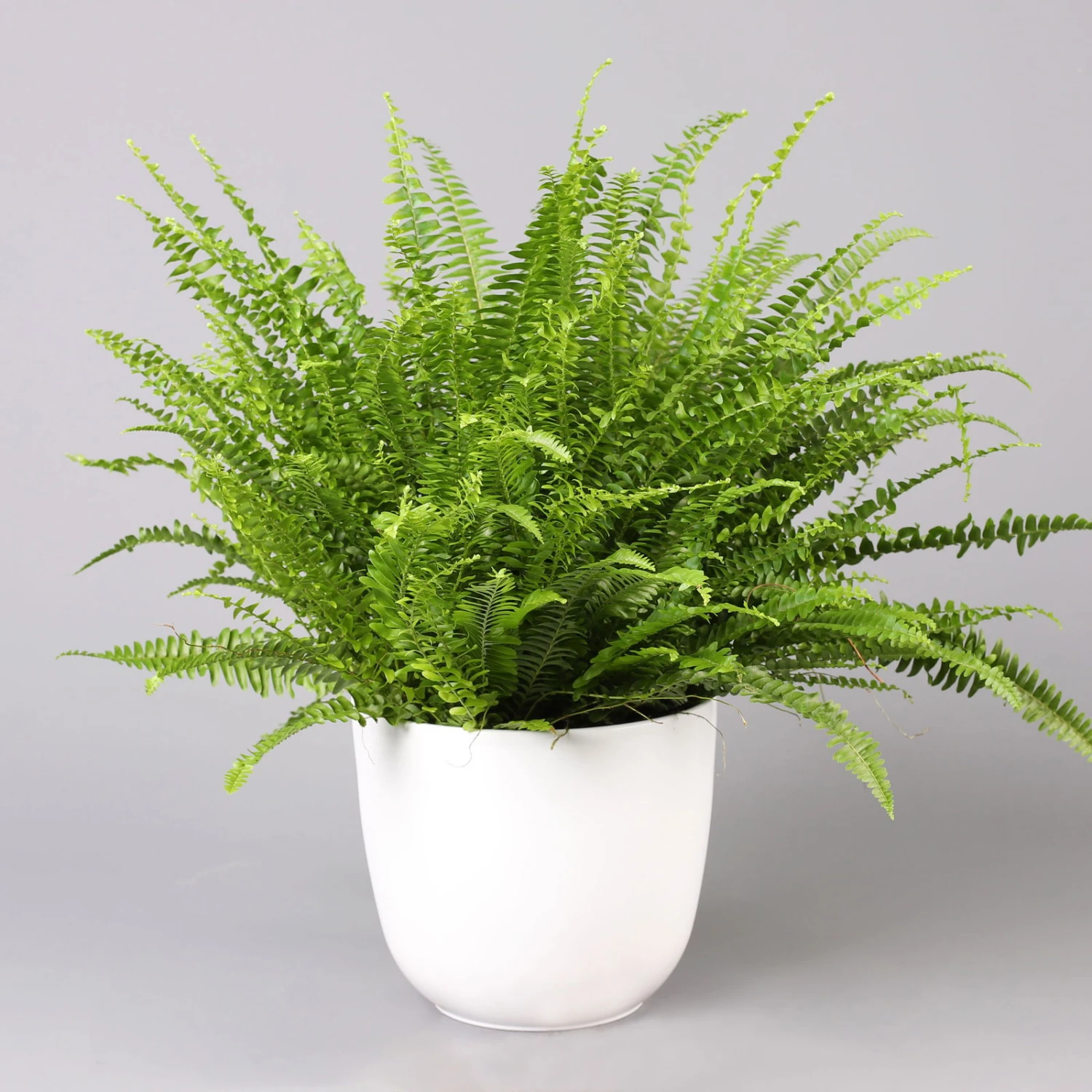 Der Schwertfarn, Nephrolepis exaltata setzt saftige, grüne Akzente im Raum und besticht mit der filigranen Geometrie seiner buschigen Wedel. Dieser Farn stammt ursprünglich aus den tropischen Regionen und fühlt sich daher nur in einer warmen und feuchten Umgebung wohl. Sorgen Sie also dafür, dass Ihr Schwertfarn keinen Temperaturen unter 16 Grad Celsius ausgesetzt wird und auch nicht unter Trockenheit zu leiden hat. Regelmäßiges Besprühen mit kalkarmem und lauwarmem Wasser tut dem Gewächs gut. Bei der Wahl des Standorts ist unbedingt zu berücksichtigen, dass Schwerfarn keine direkte Sonne verträgt, sich dagegen mit halbschattigen Laden zufrieden gibt. Diese bemerkenswerte Pflanze ist nicht nur ein sympathisches Highlight, sondern auch ein effizienter Luftfilter, der für ein optimales Raumklima sorgt.